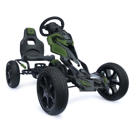 Kart à pédales Scout kaki – enfants 5–12 ans, roues EVA, frein à main